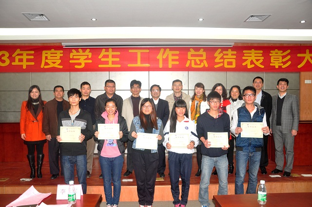 会上,学生工作部副部长桂爱民作2013年学生工作总结,重点从学生日常思想教育、学风建设、校园文化建设等几个方面总结了本年度的工作开展情况及取得的成绩。团委书记黄馥丽对大会宣读了表彰决定。