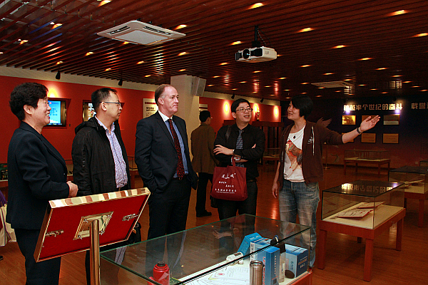 Tony Gray还在办公室、招生就业办人员的陪同下参观了校史馆、就业文化广场、创业文化广场、职业指导中心、电梯工程学院、建筑工程学院BIM中心。