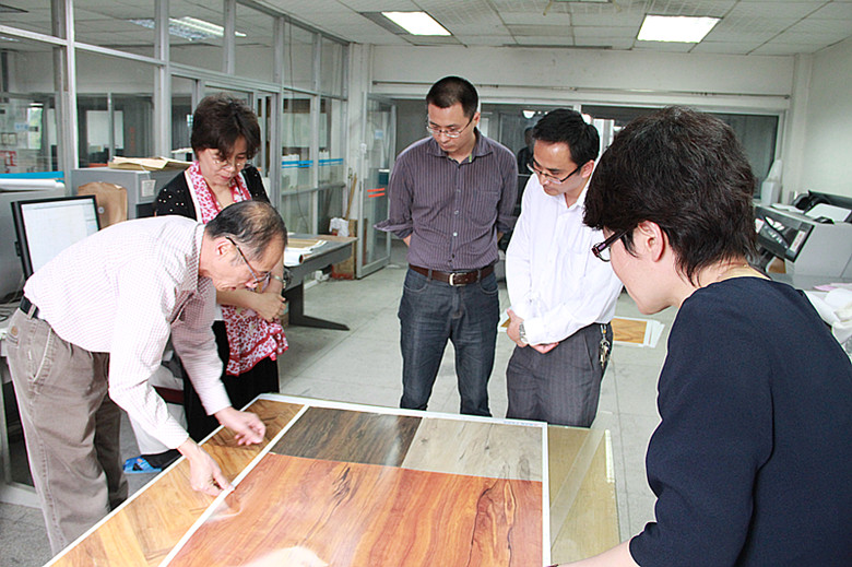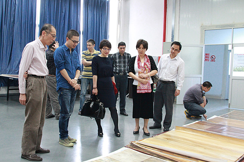 在企业三位领导的陪同下,胡校长一行参观考察了彩色版辊设计和制造的全过程。