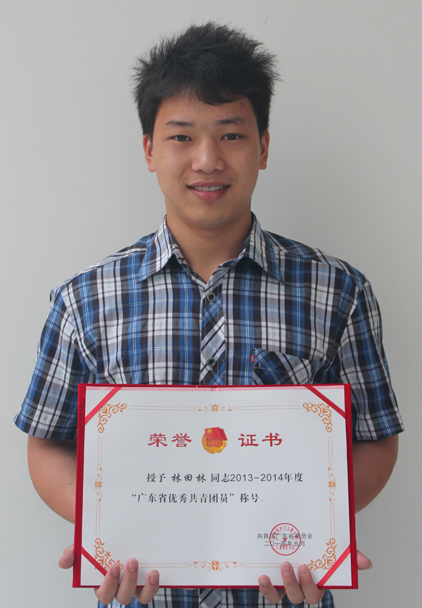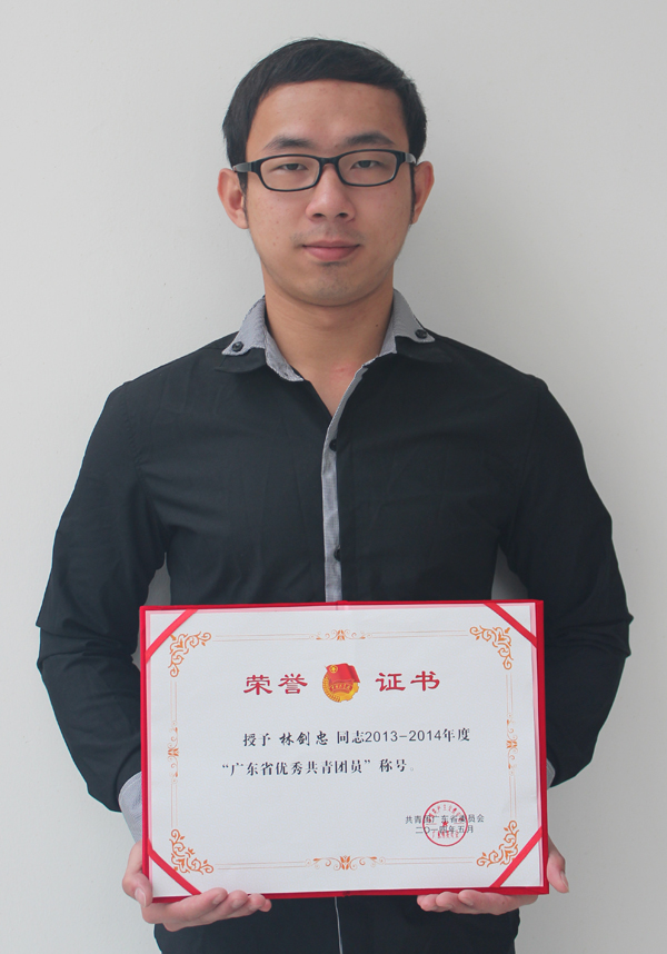 2014年5月4日,广东团省委发文表彰"2013-2014年度广东省优秀团员、优秀团干部、五四红旗团委"。我校林剑忠、林田林等两名共青团员被评为2013-2014年度"广东省优秀共青团员"。
