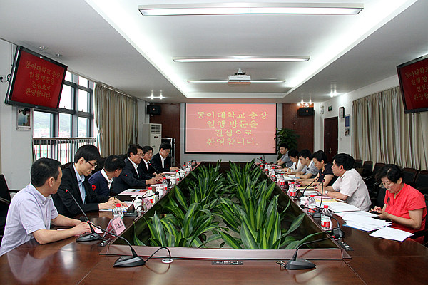 权五昌校长介绍了东亚大学的基本情况及办学特色,并对我校在就业创业方面所取得的成绩表示钦佩。他表示,东亚大学与我校就国际化战略办学理念相通一致,期待双方在合作办学方面有深入的交流与合作,并就专升本、交流生计划等项目进行了深入探讨。