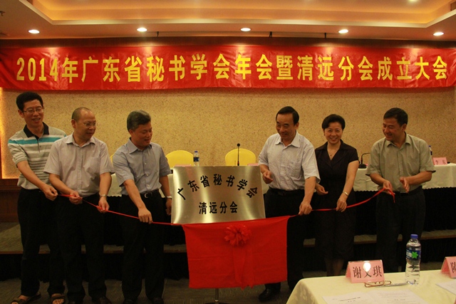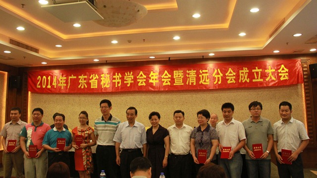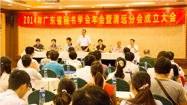 6月28日,2014年广东省秘书学会年会暨清远分会成立大会在清远市召开。省秘书学会会长杨桐,省秘书学会常务副会长刘文清、闫华,名誉副会长翁宗奕,副会长劳汉生、毕燕萍、柯智耀、黄汉兵,秘书长李艇等学会领导出席了会议。暨南大学、广东外语外贸大学、广东工程职业技术学院、清远职业技术学院、广东行政职业技术学院、阳江职业技术学院等会员单位的100多人参加了会议。这次会议总结了学会成立以来的工作和经验,探讨了学会以后的工作方法和发展方向,并为广东省秘书学会年会暨清远分会揭牌。会议分别由广东工程职业技术学院劳汉生校长、清远职业技术学院李东教授主持。