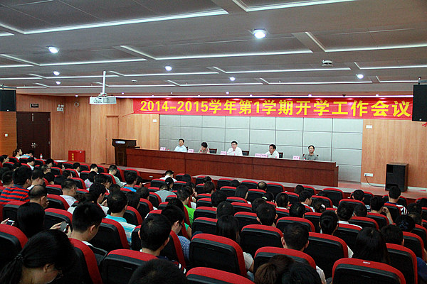 9月1日上午,我校在图书馆学术报告厅召开了2014-2015年第一学期开学工作会议。学校党委副书记、校长劳汉生,党委副书记、纪委书记温孝胜,副校长胡艳曦,党委副书记李军,党委委员、副校长李艇,校务委员,中级及以上职称教师,副科及以上行政人员共200多人参加了会议。温孝胜主持会议。