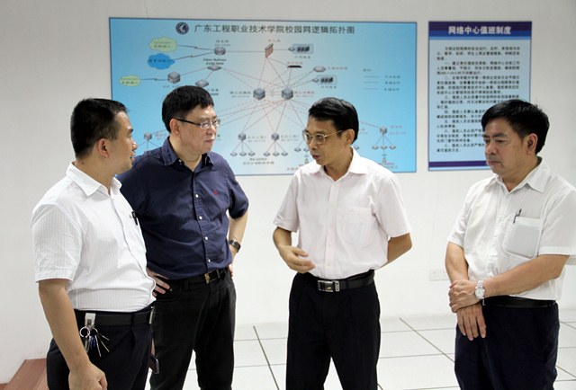9月2日,广东省教育厅朱超华副厅长莅临我校调研指导校园信息化建设工作。学校校长劳汉生,党委副书记、纪委书记温孝胜陪同调研。