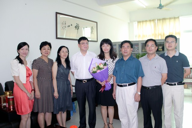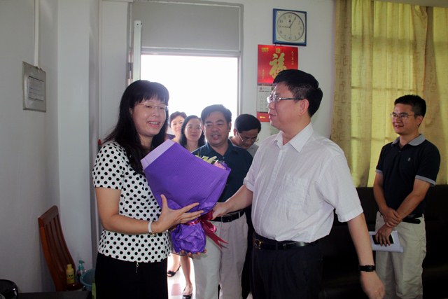 学校领导首先来到思想政治理论课教学部。在见到优秀教师方燕时,劳汉生校长与她亲切握手,感谢她多年来对学校各项事业的辛勤付出。温孝胜、李军等校领导也对方老师的奉献精神致以真诚的感谢。