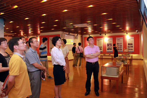 劳汉生陪同黄海燕一行参观了校史馆、创业就业广场、就业中心、电梯工程学院和建筑工程学院。