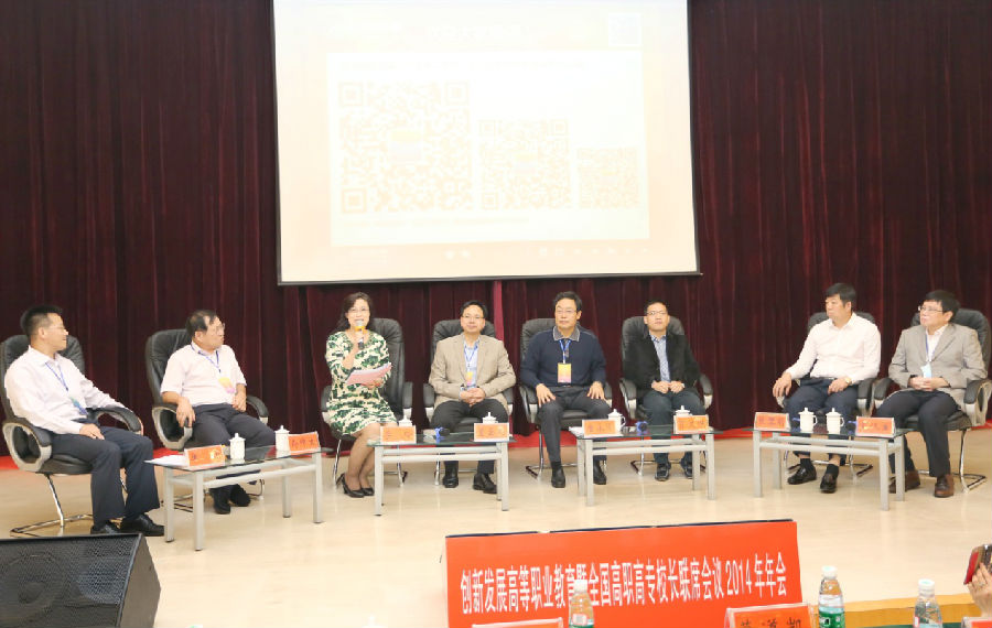 "激发高职院校办学活力"论坛我校劳汉生校长(右一)作为嘉宾互动交流