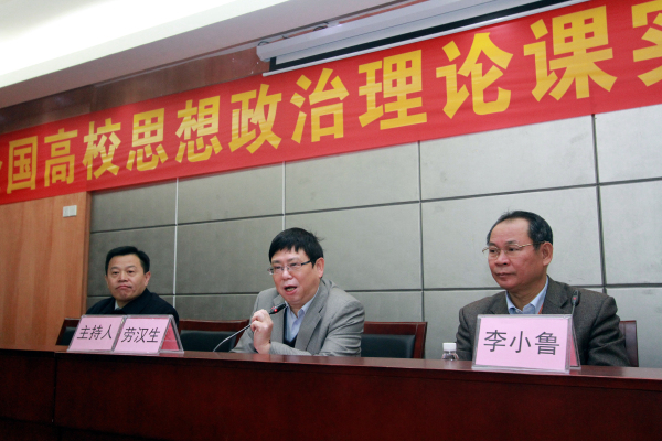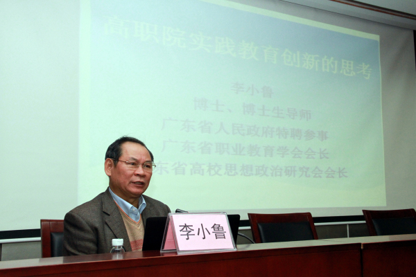 广东省人民政府特聘参事、广东省高校思想政治理论研究会会长李小鲁,广东省教育厅思政处处长袁本新博士、我校党委书记刘洁、校长劳汉生、副校长李艇等出席了19日的开幕式。开幕式由劳汉生校长主持,党委书记刘洁致欢迎辞,她对省厅、研究会领导对我们学校思想政治理论课的重视和各位专家学者的到来表示感谢和欢迎。李小鲁会长和袁本新处长也分别作了重要讲话。袁本新处长充分肯定了我校在思政课实践教学中所做的一系列改革和探索。李小鲁会长指出,我校在思想政治理论课实践教育中敢于创新、敢于突破,并取得卓有成效的成绩,源于我校党政领导的高度重视、全体思政课教师的辛勤努力,是全省思想政治理论课实践教学的典范。随后,李小鲁会长结合职业教育发展的新形势,作了题为"高职院实践教学创新的思考"专题报告,提出了思政实践教育的创新思考,研判了现代职业教育体系构建下思政实践教育的新要求,并运用"箱体运作理论"解构了新形势下德育实践的过程,为职业教育思政教育内涵发展提供了新思路。大会还请来广东首位优秀社会科学家、珠江学者、华南师范大学马克思主义学院院长陈金龙博导作了关于"三个自信"的专题报告。