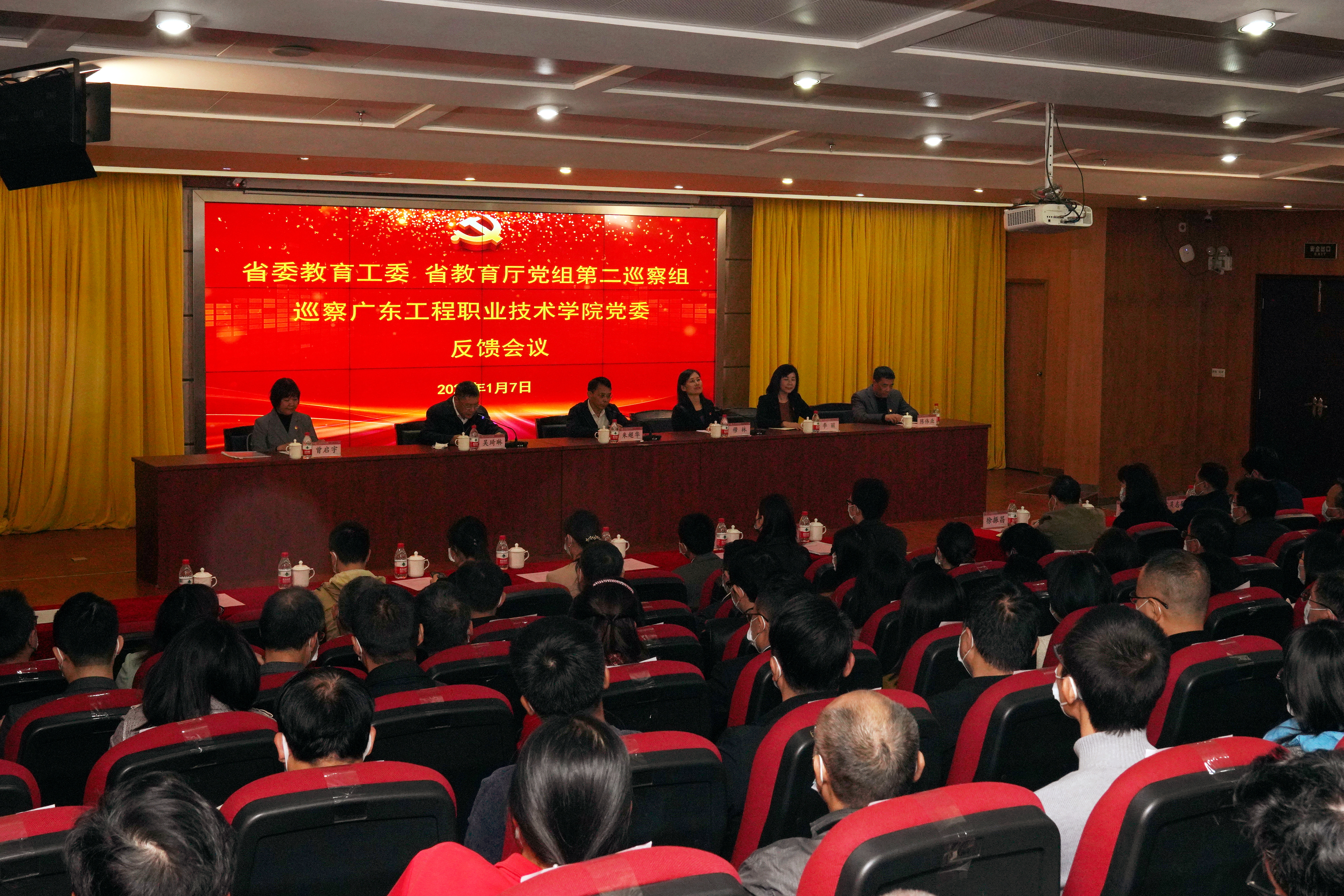 2022年1月7日,省委教育工委、省教育厅党组第二巡察组巡察广东工程职业技术学院党委反馈会议在我校天河校区召开。省委教育工委委员,省教育厅党组成员、副厅长、一级巡视员朱超华出席会议并讲话,第二巡察组组长穆林向学院党委书记吴琦琳和党委领导班子反馈了巡察意见。会议由吴琦琳主持。