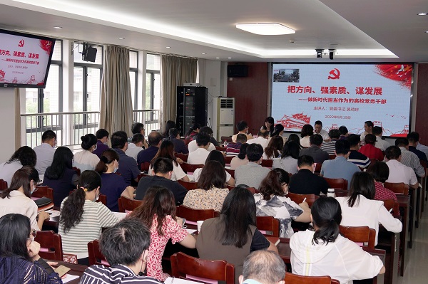 授课中,吴琦琳以《把方向、强素质、谋发展——做新时代担当作为的高校党务干部》为题,深入聚焦习近平总书记重要指示批示和讲话精神,结合“十四五”时期承担的重点任务目标、面临的发展形势和风险挑战,分别从“把准方向,明确新时代高校党建工作的新要求”、“提升能力,成为高素质业务化的学校党务干部”、“善抓工作,以高质量党建引领学校事业高质量发展”三个方面,全面、系统地进行了深入阐述。