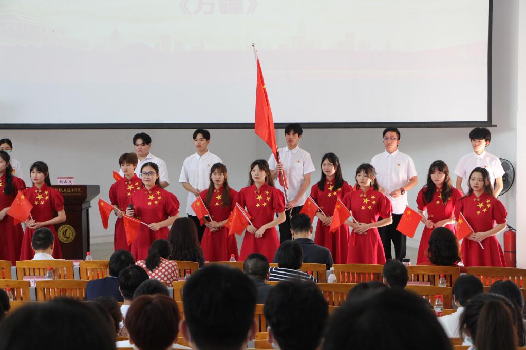 在恰逢中国共产主义青年团成立100周年这个特殊节点,为一起见证新团员入团这一庄严、神圣的时刻,大会还特此举行入团宣誓仪式,新团员代表面向团旗铿锵宣誓,凝聚青年力量。