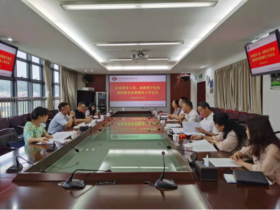 调研座谈会上,吴琦琳介绍了学校发展现状,汇报了学校党委巡察整改情况。他指出,学院党委高度重视巡察整改工作,层层压实工作责任,扎实落实整改任务,近半年来学校完成了超过80%的巡察整改任务,取得了阶段性成果。下一阶段,学校党委将坚决以攻坚克难的精神推进整改落实,研究实招硬招解决“硬骨头”等遗留问题。徐振昌重点汇报了学校巡察整改的难点以及下一步推进整改的措施。