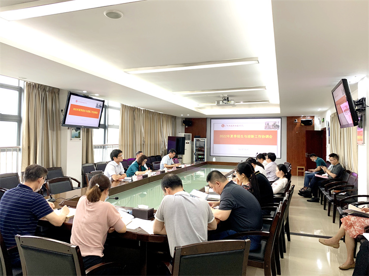 为做好2022年夏季招生及迎新工作的组织和协调工作,7月6日上午,学校在广州校区办公楼615会议室与省职教城校区办公楼411连线召开学校2022年夏季招生与迎新工作协调会。学校党委书记吴琦琳,校长李丽等全体校领导,相关职能部门负责人及二级学院负责人参加会议,会议由副校长张小广主持。