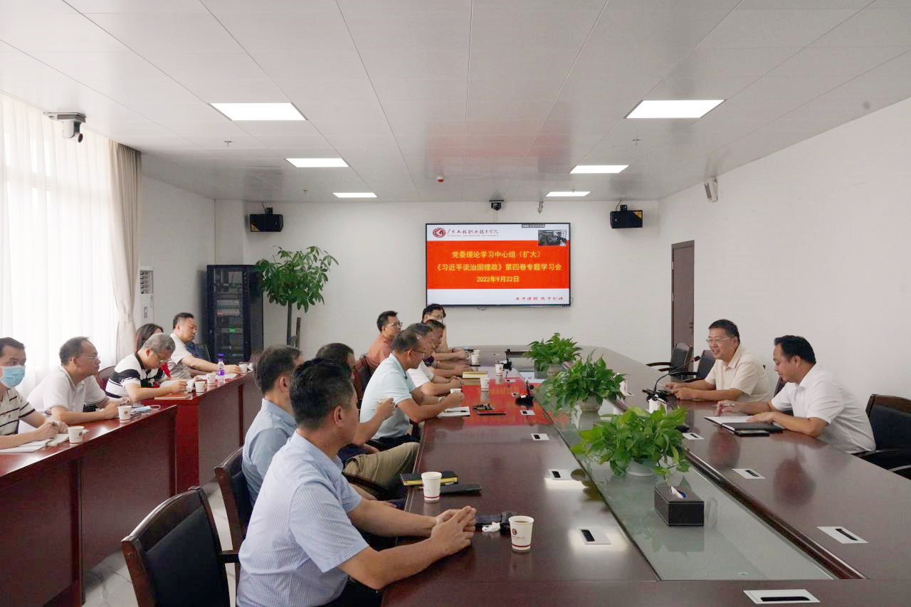 9月22日下午,学校召开党委理论学习中心组(扩大)学习会,专题学习了《习近平谈治国理政》第四卷。会议由学校党委吴琦琳书记主持。全体校领导,全体中层干部参加会议。吴琦琳书记进行了领学,建筑工程学院党总支钟婷书记谈了学习体会。学习会采用视频连线方式在广州校区和省职教城校区同步举行。