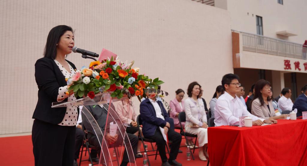 党委书记吴琦琳、校长李丽向军训团教官代表冯伟东、冯文聪授军训团团旗。授予旗帜是赋予使命,接过旗帜是扛起责任。