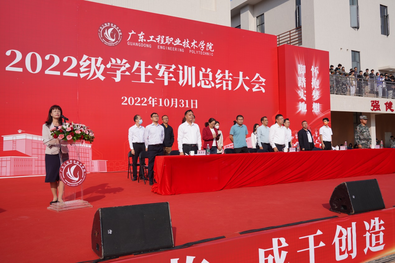10月31日上午,学校省职教城校区举行2022级学生军训总结大会。学校党委书记吴琦琳、副书记方燕、副校长揭英荣,南沙区武装部督导冯伟东,常驻省职教城校区职能部门中层干部,省职教城校区二级学院党总支书记、院长、副书记、新生辅导员,全体新生,承训部队领导与教官出席了会议。大会由党委副书记方燕主持。