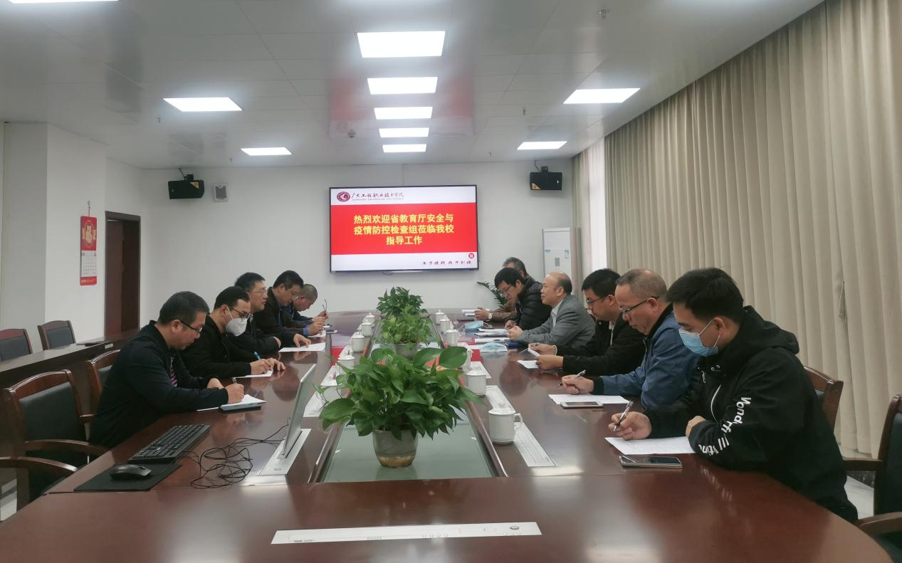 省教育厅职终处干部夏爱军、万俊,省职教城事务中心科长黄烈坚和相关同志参与检查,学校党政办公室、学生工作部、教务部、总务后勤部等部门负责人及相关人员陪同检查。