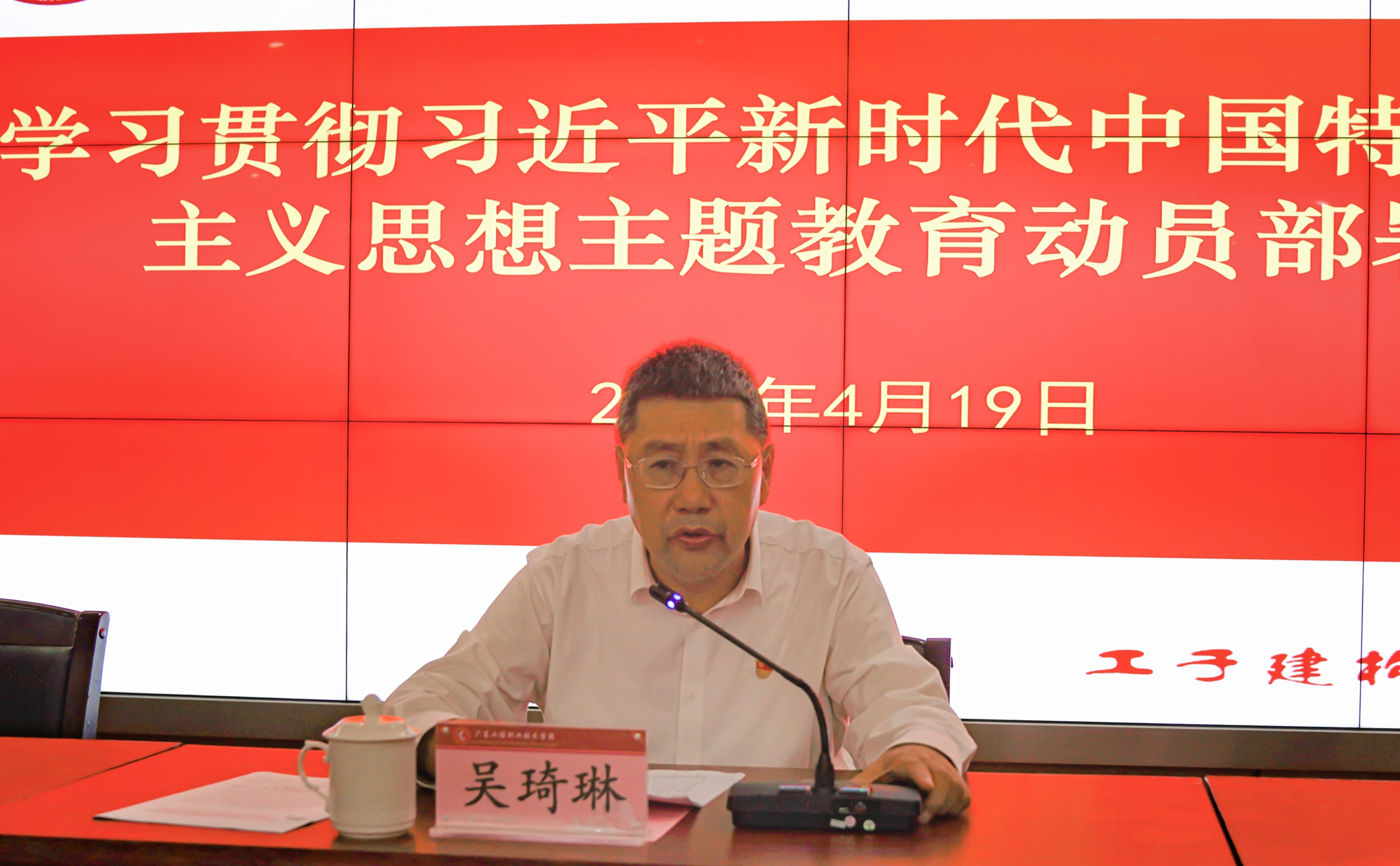 吴琦琳要求,要认真学习领会,抓好贯彻落实,按照习近平总书记、党中央部署和省委、省委教育工委工作要求,扎实开展主题教育,切实加强党的创新理论武装,为奋进新征程凝心聚力,加快推动“双高”校建设,为广东在新征程中走在全国前列、创造新的辉煌作出新的贡献。一是要深刻认识开展主题教育的重大意义,坚决把思想和行动统一到党中央的决策部署上来。深刻认识开展主题教育是统一全党思想、意志、行动的必然要求,是推动全校党员干部积极担当作为的必然要求,是深入推进学校全面从严治党工作的必然要求,是坚决扛起习近平总书记赋予广东的使命任务的必然要求。全校各级领导干部要充分认识开展主题教育的重大意义和目标要求,准确把握学习重点,以理论上的清醒夯实政治上的坚定,将开展好主题教育作为全面贯彻党的教育方针,落实立德树人根本任务,奋力推进“双高校”建设的具体实践,为广东高质量发展贡献教育力量。二是坚持“两个结合”,准确把握目标任务,紧密结合学校实际高标准开展主题教育。要牢牢把握“学思想、强党性、重实践、建新功”的总要求,坚持学思用贯通、知信行统一,把习近平新时代中国特色社会主义思想转化为坚定理想、锤炼党性和指导实践、推动工作的强大力量,始终保持统一的思想、坚定的意志、协调的行动、强大的战斗力,努力在以学铸魂、以学增智、以学正风、以学促干方面取得实实在在的成效。要全面落实重点措施,精心组织理论学习,深入开展调查研究,坚定不移推动发展,深刻检视整改,建章立制巩固成果。三是要坚持科学谋划,在有机融合一体推进中扎实开展主题教育。党委坚决扛起主题教育的政治责任,各单位要把谋划好组织好主题教育作为事关学校发展大局的大事,以更高的标准更严的要求落实主题教育各项任务。加强组织领导,成立主题教育领导小组,把学校主题教育各项部署落到实处。抓落实求实效,切实推动解决学校改革发展的重点难点问题,把师生急难愁盼的事情抓实抓好,让全校广大师生共享学校高质量发展成果。
