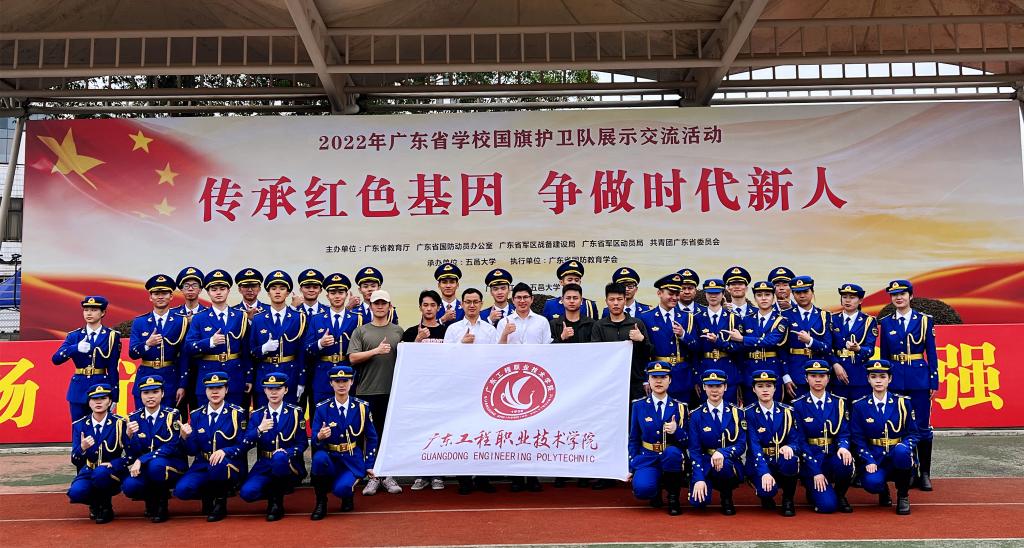 本次主题为“传承红色基因 争做时代新人”的比赛活动由广东省教育厅、广东省国防动员办公室、广东省军区战备建设局、广东省军区动员局、团省委共同主办,历经2022年的初赛,我校国旗护卫队从80多支高职队伍中脱颖而出,进入到全省决赛。为备战此次比赛,学生工作部领导老师与国旗护卫队学生骨干根据比赛的相关要求,严格规范动作,深入进行研讨,制定了详细的训练计划,反复观看往届国赛、省赛视频,以学促练;努力探索与中小学共建爱国主义实践基地,以建促练;积极与兄弟院校开展热身赛,查摆不足,以赛促练。受到疫情影响,2022年国旗护卫队展示交流活动延迟了近一年时间,但国旗护卫队队员们一直坚持训练,丝毫不松懈,刻苦训练,风雨无阻,勇于拼搏,始终保持最饱满的状态迎接挑战,在比赛中充分展示了工程学子意气风发的良好精神风貌。