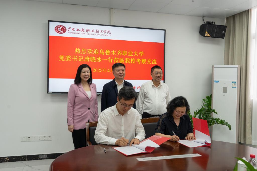 在与会学校领导的见证下,乌鲁木齐职业大学副校长田晓霞与我校副校长张小广分别代表学校签订合作意向书。
