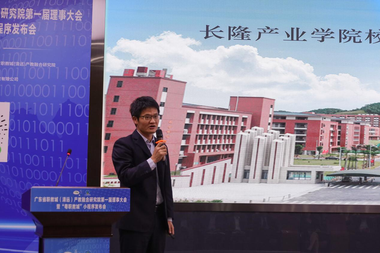 4月27日广东省职教城(清远)产教融合研究院第一届理事大会暨“粤职教城”小程序发布会在我校召开。清远市人民政府副市长林科聪、广东省教育厅职业教育与终身教育处一级调研员李庆松,以及省职教城各院校、清远市有关单位及园区的相关领导,企业代表,省职教城各院校学生代表,共计160人参加会议。我校党委副书记、校长李丽,党委委员、副校长吴志敏,产教融合研究院办公室、科学技术部及相关部门同志参与会议。