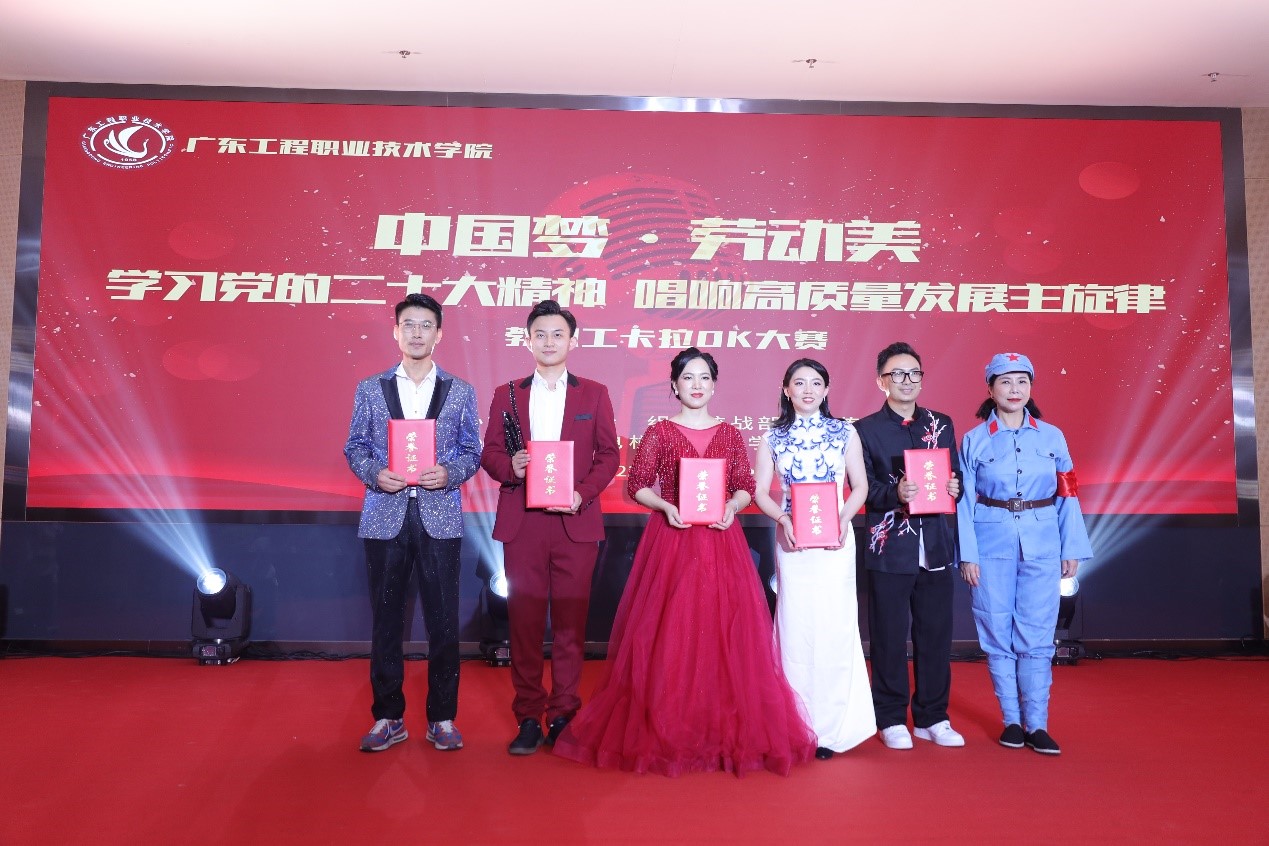为深入学习党的二十大精神,推进主题教育走深走实,展现学校教职工爱党爱国情怀、昂扬风貌和劳动精神,5月5日晚,由学校工会与组织统战部、宣传部联合举办的 “中国梦·劳动美——学习党的二十大精神,唱响高质量发展主旋律”教职工卡拉OK大赛在省职教城校区举行。党委书记吴琦琳、校长李丽等学校领导、中层干部、分工会主席和教职工代表参加了活动。