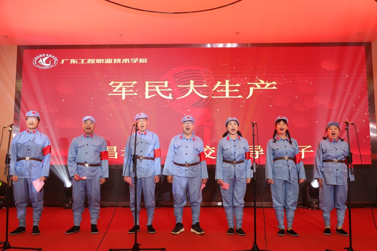 吴琦琳带领学校党委班子演唱《军民大生产》,全场观众齐声跟唱,将当晚活动推向高潮。歌声中,大家重温了中国共产党百年光辉历程,深刻学习领悟延安精神精髓,感受到当年军民大生产时热火朝天的劳动氛围,“传承红色基因,坚定使命担当”。