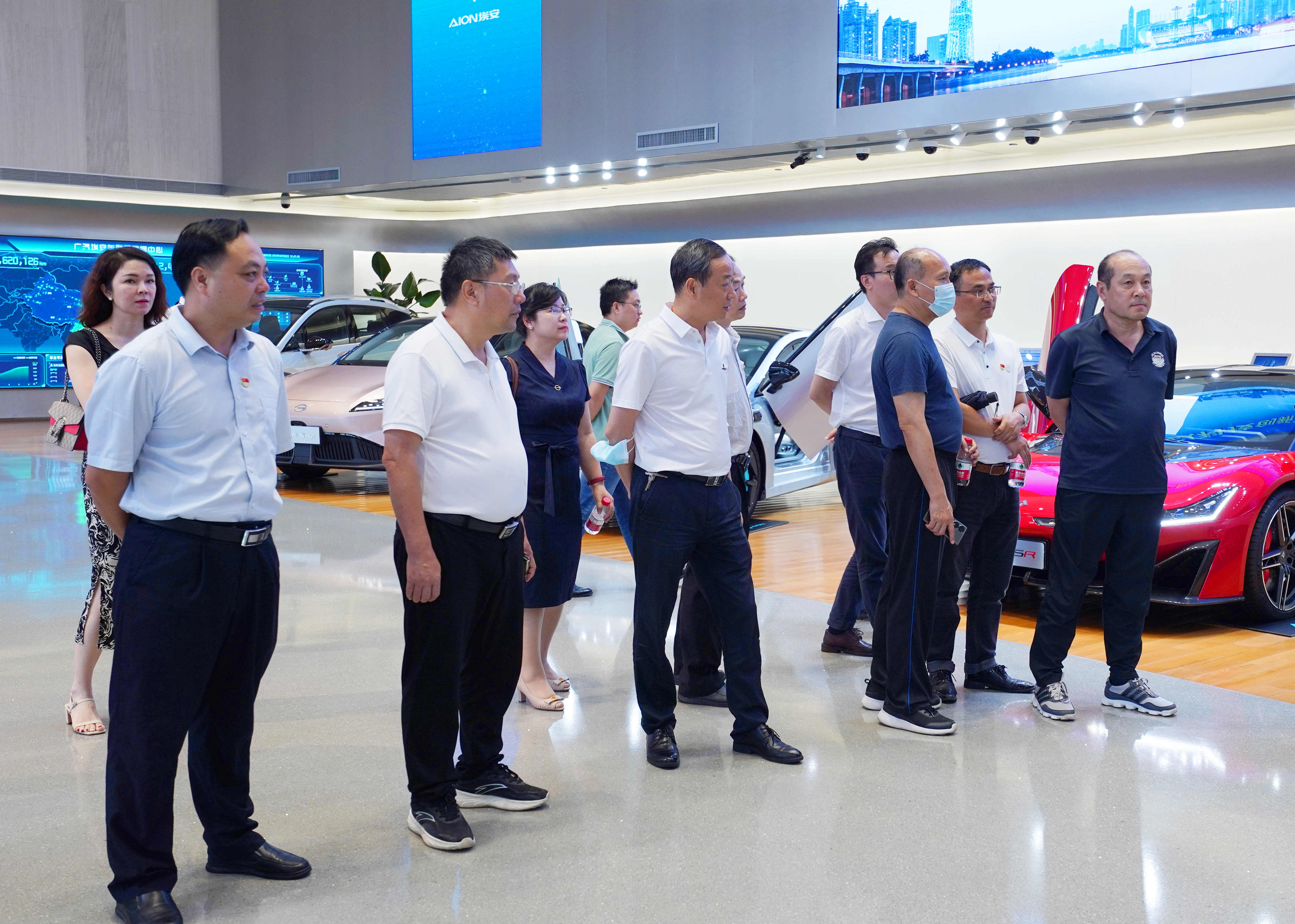在科技展厅,广汽埃安讲解员介绍了广汽埃安的发展现状、未来发展方向以及智能科技成果。读书班学员了解了广汽埃安的最新和畅销款汽车、弹匣电池技术、超倍速电池技术、海绵硅负极片电池技术,以及微晶铁锂电池、夸克电驱等核心三电技术。在智能生态工厂,读书班学员们了解总装车间、动力电池车间、涂装车间、冲压车间、焊装车间等装配流程,近距离观摩了机器人协同作业、挡风玻璃等自动安装线、电池生产等智能制造工艺,对科技自立自强有了更深刻感受和认识。