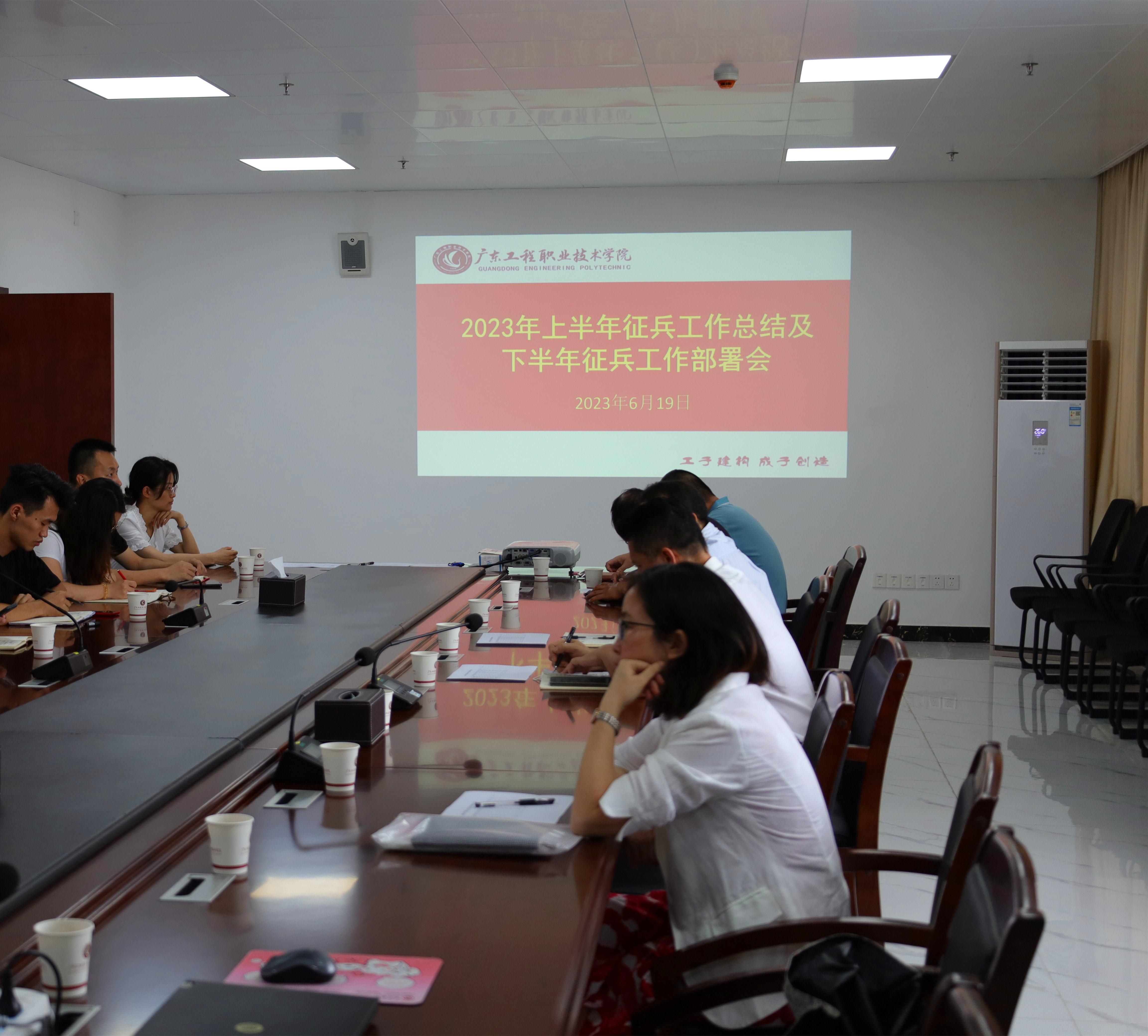 6月19日上午,学校召开2023年上半年征兵工作总结及下半年征兵工作部署会议。学校党委书记吴琦琳、副书记方燕出席了会议。学校征兵工作领导小组成员单位负责人,二级学院党委书记、副书记及负责征兵工作的辅导员参加了会议。会议由宣传部(武装部)副部长林华开主持,会议采用视频连线方式在广州校区和省职教城校区同步举行。