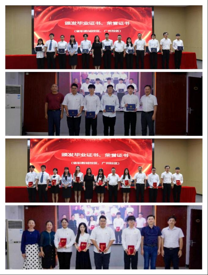(省职教校区、广州校区为优秀毕业生颁发毕业证书、荣誉证书和奖品)