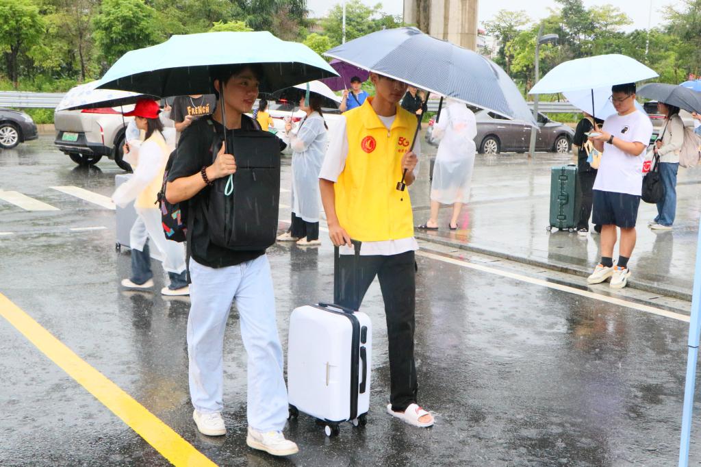 淅淅的秋雨,挡不住迎新的热情。在报到处,老师们、志愿者一张张热情的笑脸,一句句亲切的问候,一项项贴心的服务,让新生和家长们迅速感受到迎新热情。穿上雨衣,打起雨伞志愿者们在校园内来回穿梭,随处都能听见他们的热情之声——“同学,我来帮你拿行李!”细心的引导、耐心的解答和暖心的安排烘托了校园的迎新氛围,让校园的迎新环境温暖而有序。