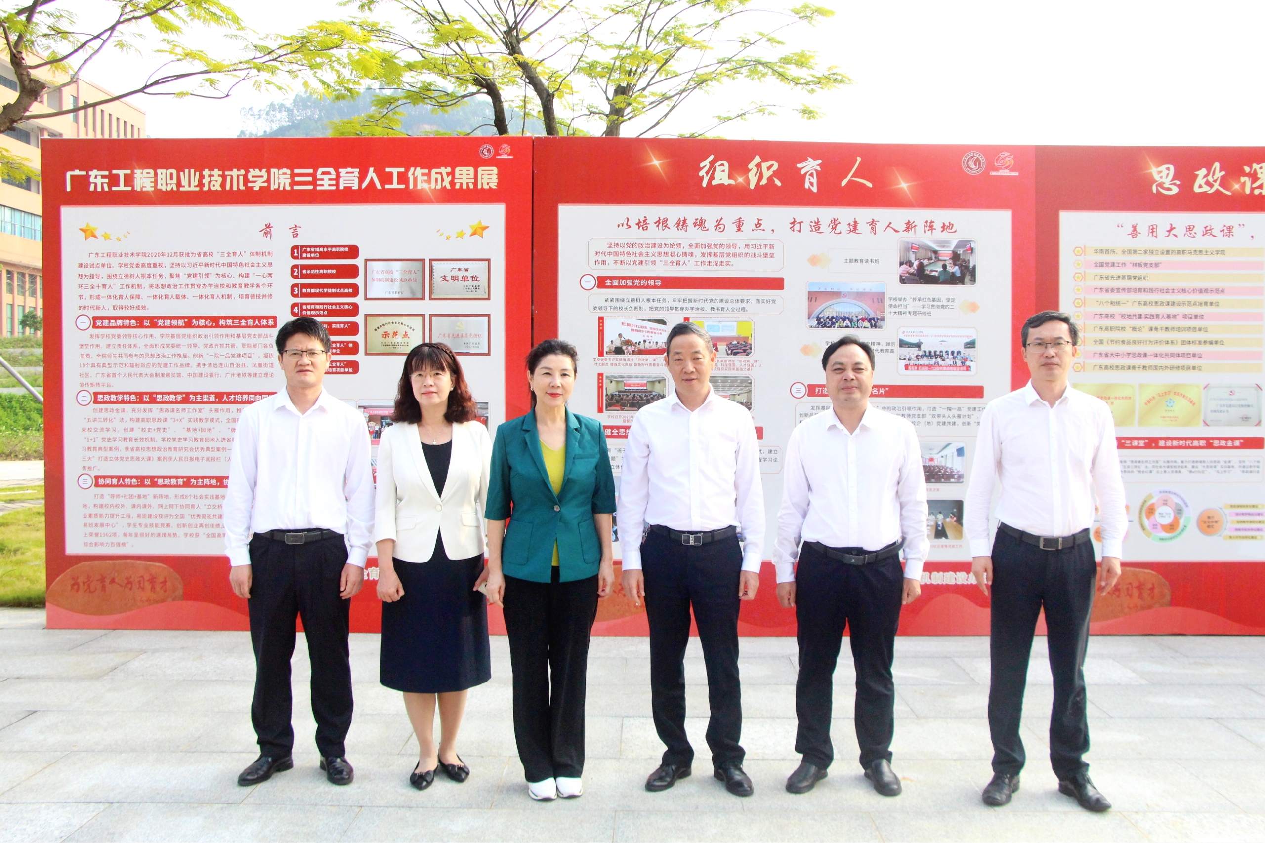 会后,与会代表观摩了学校“立德树人 三全育人”工作成果展。经过三年的建设实践,学校“三全育人”体制机制建设工作格局已全面形成,各领域有效发挥育人效能,夯实主体责任,构建了具有工程特点的“十大育人体系”。建设期间,学校成立“三全育人”工作领导小组,组织召开专题推进会三次,制作《广东工程职业技术学院制度汇编》,编制《学生工作论文集和学生工作精品项目》、《学校“一院一品”党建品牌项目》、《学校“一站式”学生社区建设工作方案》、《媒体关注》、《“立德树人 三全育人”宣传画册》、《2021-2023年师生荣誉汇编》、《学生工作德育案例、论文集》、《学校“三全育人”体制机制建设成效宣传片》等一批育人成果,形成一套科学完善的制度安排、工作机制、工作体系。