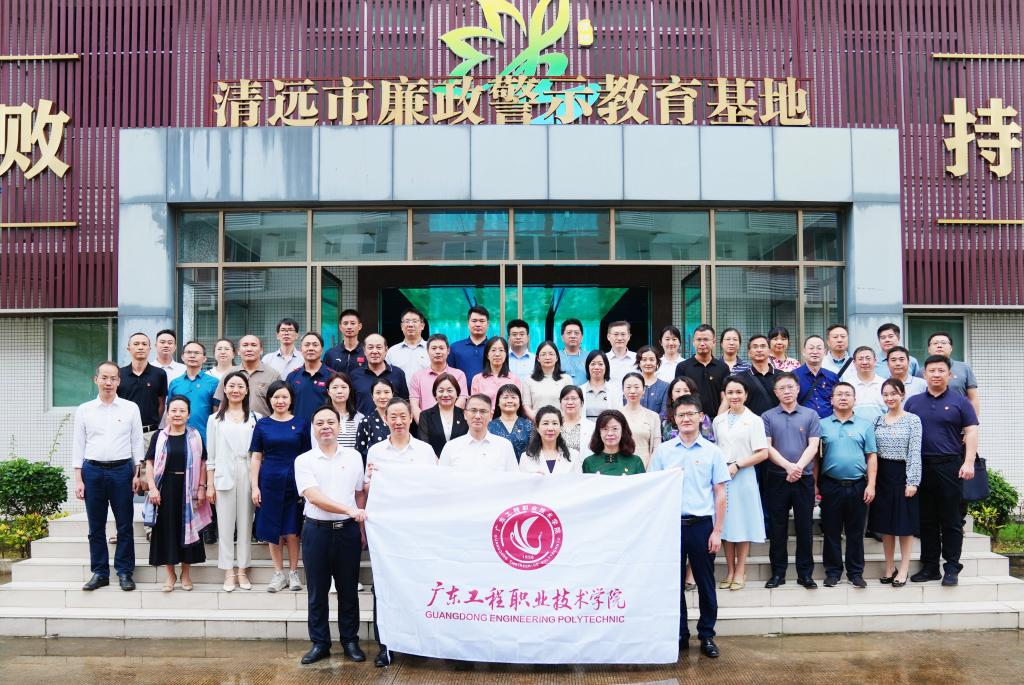 为全面加强党的纪律建设,推动党纪学习教育走深走实, 6月5日下午,学校纪委组织全体校领导、全体中层干部、各党组织纪检委员、特约监督员、辅导员代表赴清远市廉政警示教育基地参观学习。