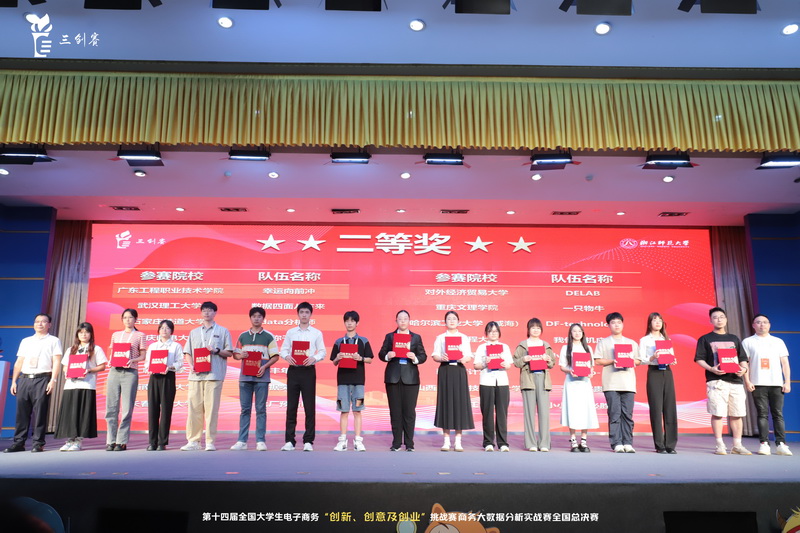 历经省赛和国赛的激烈角逐,来自我校财经学院的幸运向前冲(团队成员:陈敏霞、李莹、曾晴、黄怡婷,批导老师:陈颖、梁丹婴)和希望工程组(团队成员:姚晓玲、许逸琳、张巧欣、徐尚群、陈彩银,批导老师:陈颖、王萱)两个参赛团队最终获得商务大数据分析实战赛全国总决赛2个二等奖。