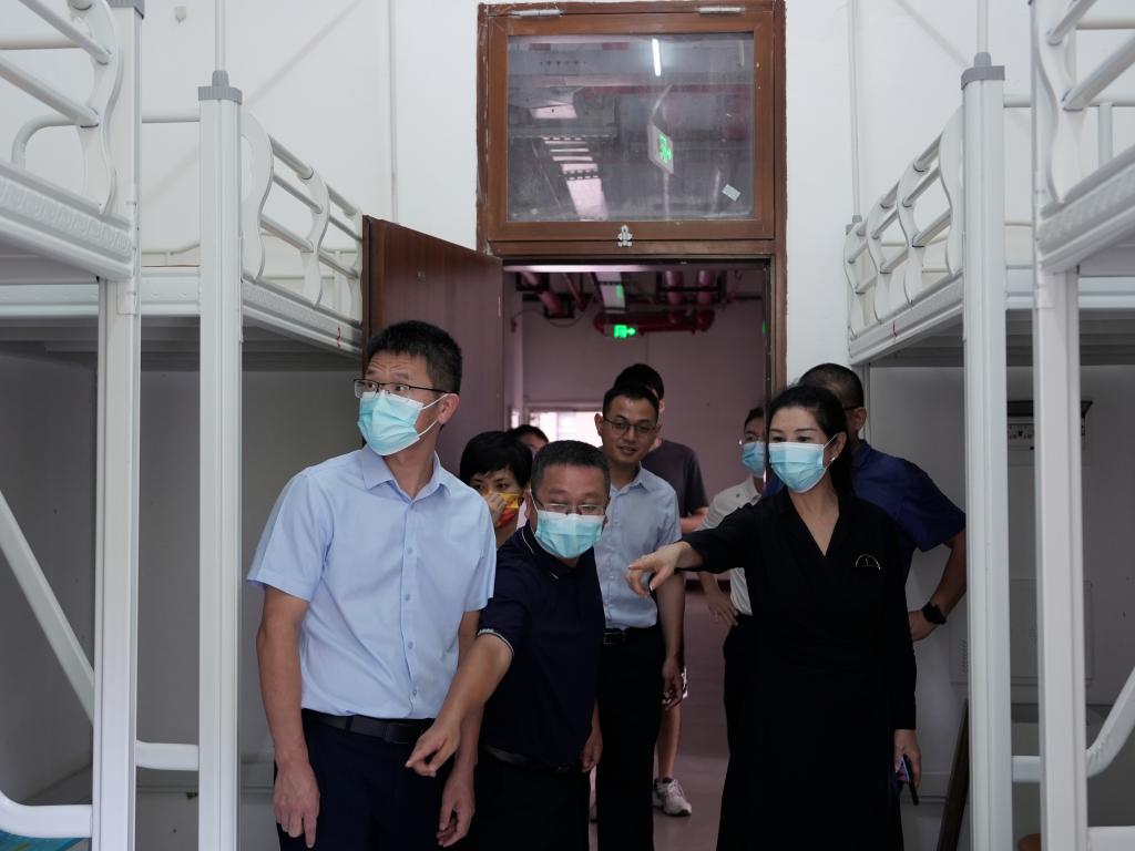 校领导一行实地检查了两校区学生宿舍、食堂、教学楼、实训室等开学准备情况,校园安全保卫情况及各二级学院开学前各项准备工作情况。