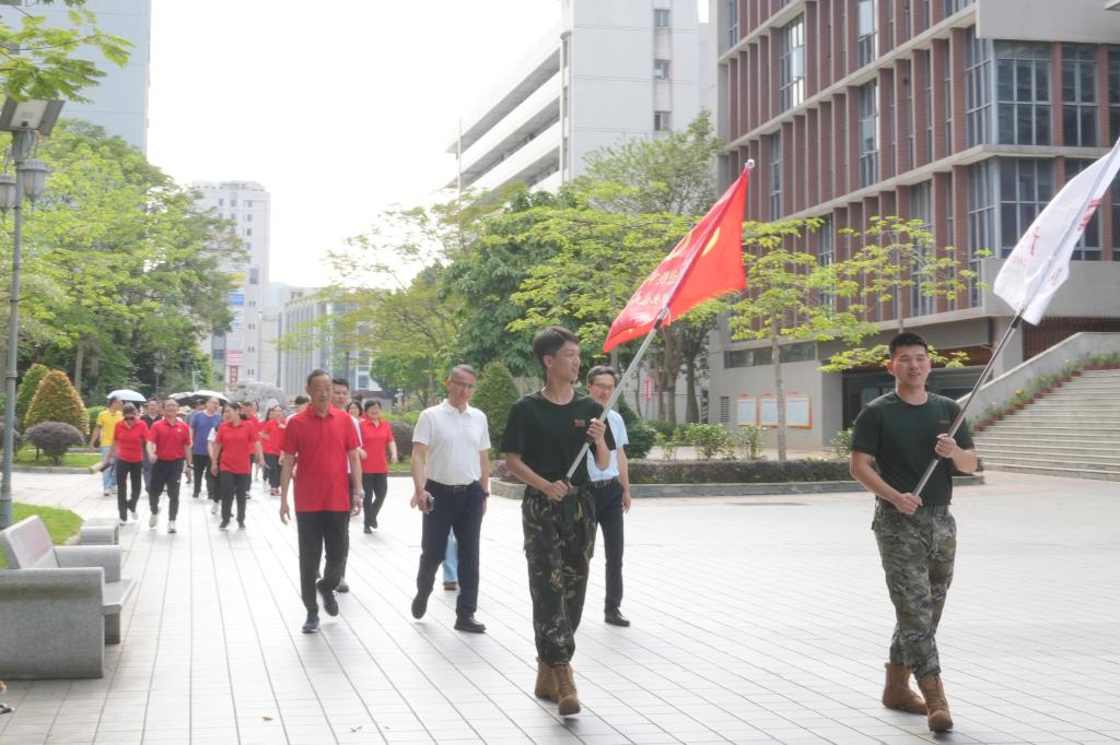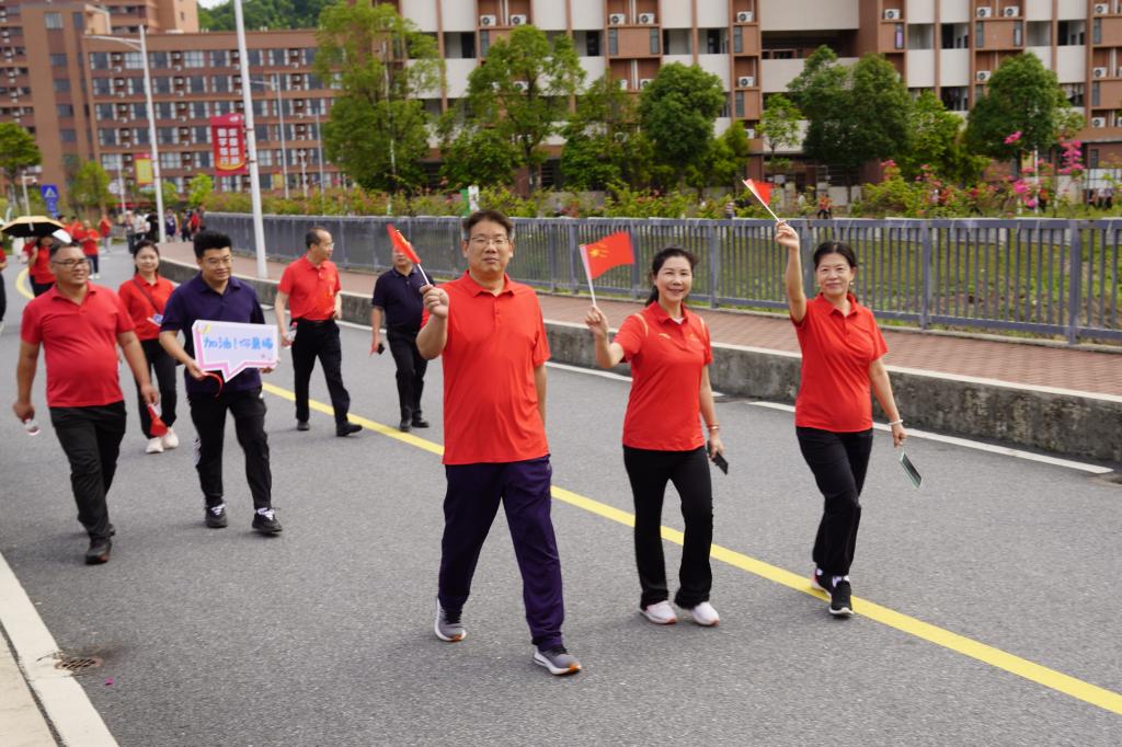 4月28日下午,为庆祝中华全国总工会成立100周年暨庆祝 2025 年五一国际劳动节,大力弘扬劳模精神、劳动精神、工匠精神,学校工会在两校区组织开展“中国梦 劳动美”——百年工运薪火相传 工程先锋筑梦同行为主题的教职工校园健步走活动。学校党委书记叶忠明,党委副书记、校长李丽等学校领导及近三百名教职工参加活动。