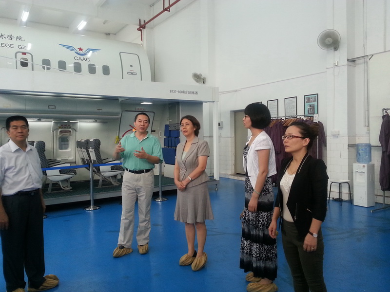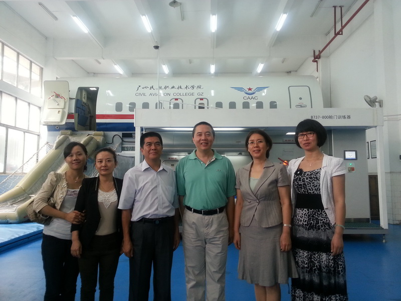 10月24日,人文社科系崔淑琴主任、陆世新副书记,焦英副主任及高美玲、戴璐两位教研室主任,前往广州民航职业技术学院交流参观,受到了广爱空中乘务职业技能训练中心秦慰文总经理的热情接待。