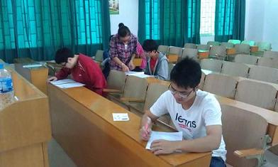 学生全神贯注填写应聘登记表