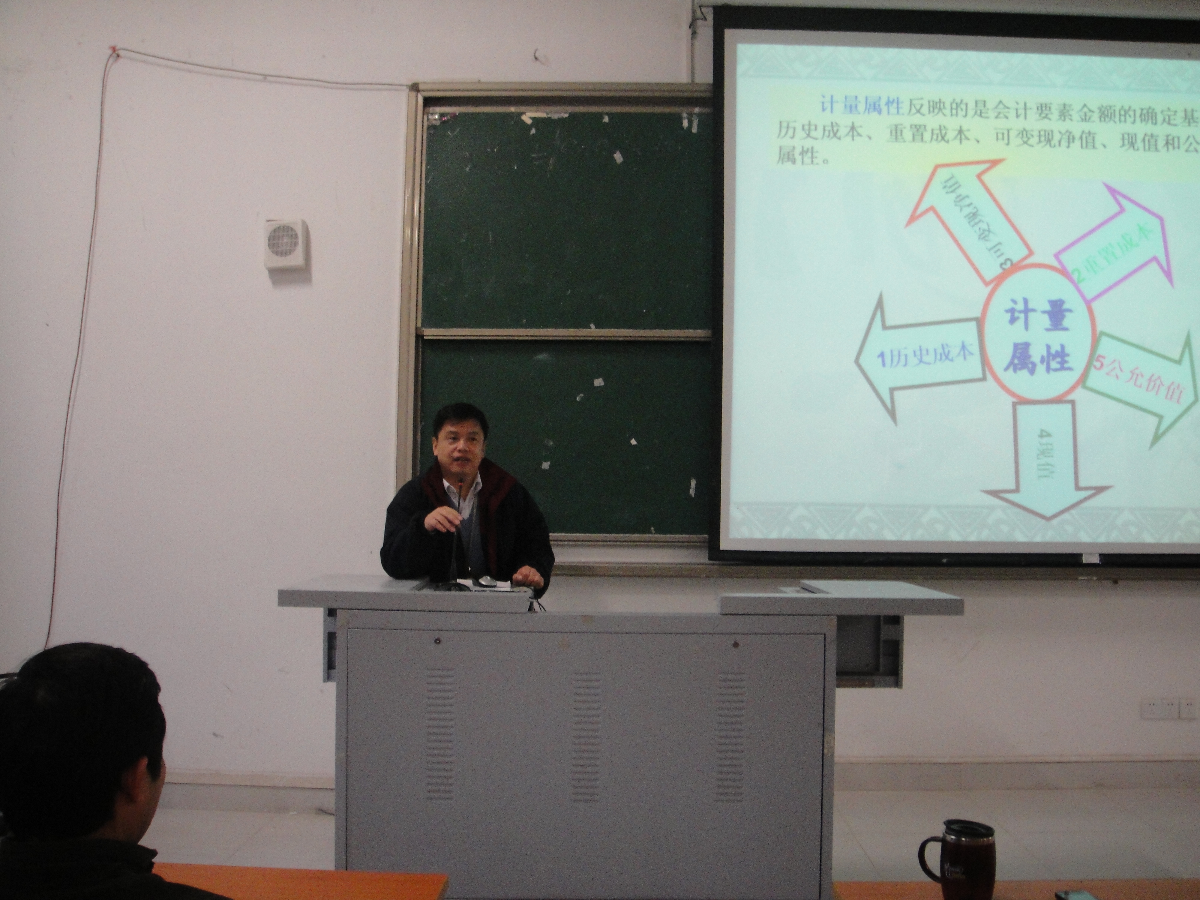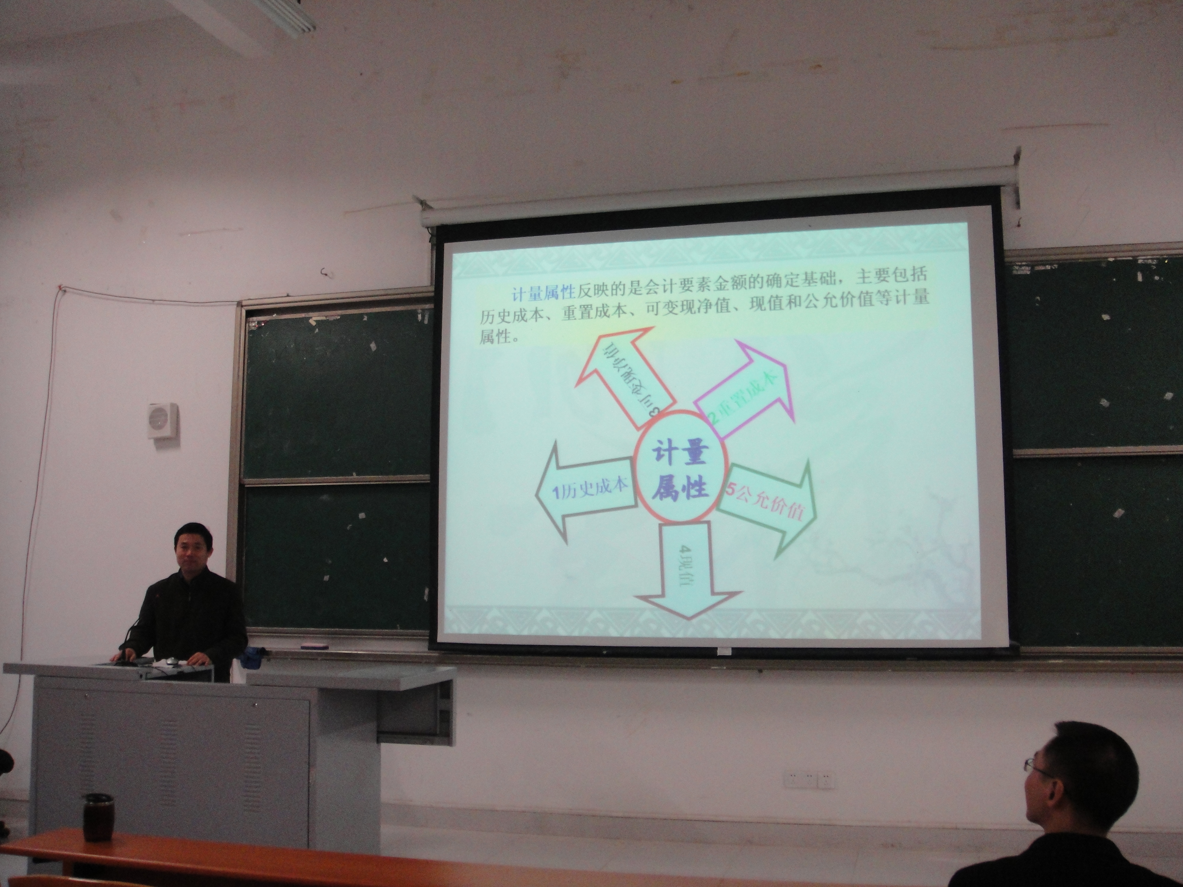 黄明卿副教授从计量属性,即历史成本、重置成本、可变现净值、现值等入手,引出了讲座的主题——"公允价值的计量" 。在讲座中,黄明卿副教授用简单生动的语言向同学们阐述了公允价值的定义及其理论的发展,深入分析了公允价值在当今国际会计准则中的重要地位以及发展方向,并针对公允价值会计与历史成本会计的特色和不足进行了对比。黄明卿副教授的讲述清晰详细、深入浅出,特别是在遇到比较专业的理论知识时,适时地举例说明,让同学们的理解更为直观,学习更加有效。