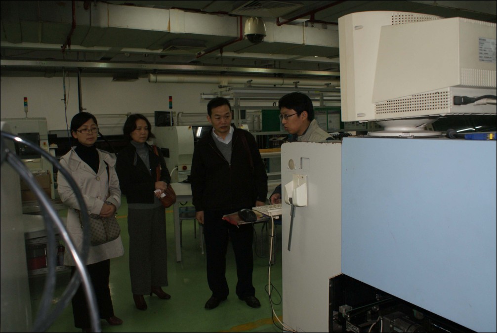 在广东工业实训中心SMT专业培训部计景春部长、戚宇恒老师的陪同下,曹主任一行首先参观了SMT培训基地。在SMT专业技术培训这一领域中,广东技术师范学院首当其冲,享誉全国,为SMT行业输送了几千个熟练的SMT专业技术人才,很多大公司比如富士康,诺基亚,西门子的技术高层都是从这里走出去的。然后,双方就SMT培训流程、培训经费等相关内容进行了深刻的探讨。最后,参观了机器人、电工电子、通信工程、视频中心、数控加工中心等实训室,戚宇恒老师详细了介绍各个实训室。