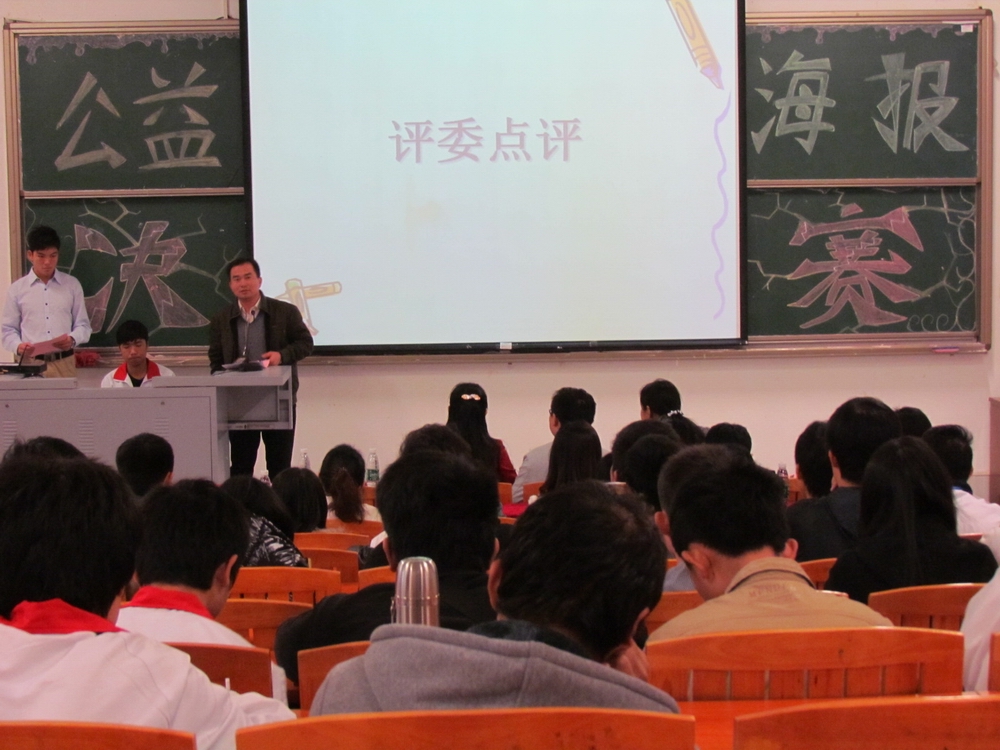 在总决赛上,各评委老师以公平、公正的态度认真评分、最后,朱巍峰副主任对此次公益海报设计大赛作出点评,并就此次比赛中存在的优缺点给出了中肯的意见,使此次活动划上一个圆满的句号。