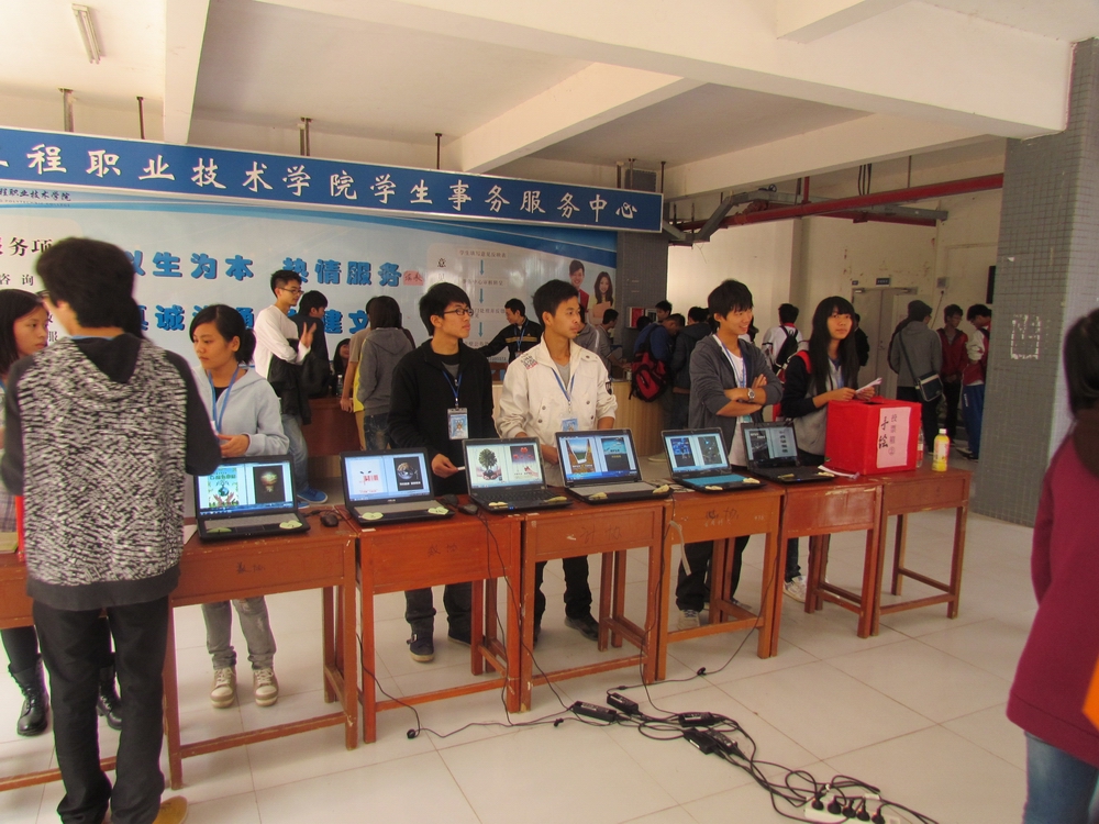 为了增强同学们对计算机文化和科普知识的认识,激发广大学生绿色精神,调动学生动手、动脑、电脑设计制作的能力,不断提高学生的专业技能和文化底蕴,我系承办的广东工程职业技术学院第九届校园技能展示节公益海报设计大赛总决赛于12月18日中午在实训五201举行。 担任本次比赛的评委有朱巍峰副主任、多媒体教研室王惠荣主任、姜晓梅老师、院团委李冠文老师、建筑工程学院李湘华老师。院团委黄馥丽副书记、施焦副书记、计算信息系刘松梅副书记、刘娟老师、霍仙丽老师出席了本次比赛。