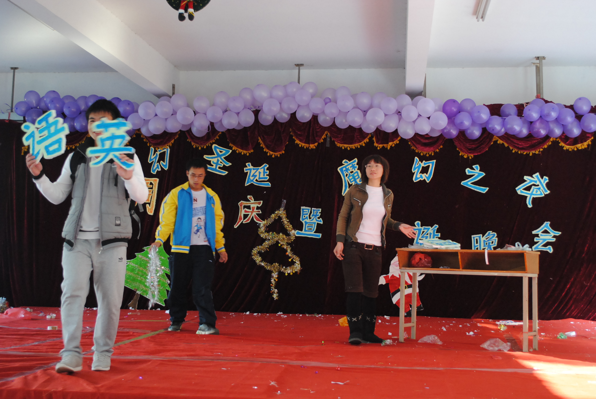 12月25日,以应用外语系学生为主体,全校同学共同参与的"英语俱乐部",在后"世界末日"发起"反攻",师生们以狂欢的PARTY,粉碎了末日谎言。晚会现场,刘志永老师开场致词,并领绶英俱经典手势"I Can Speak Good English!",肖青老师深情演绎英文诗朗诵把晚会推向高潮。整场晚会,歌曲、舞蹈、服装秀、话剧、小品……节目缤纷,笑语不断,热闹非凡。圣诞晚会的举行让更多同学渴望加入"英语俱乐部"也为寒冷的冬夜带来温暖的正能量!