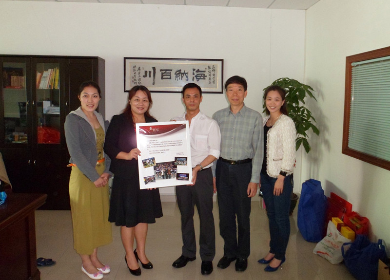 2012年12月我院啦啦操队参加了江苏常州全国啦啦操联赛总决赛,荣获技巧啦啦操三级冠军,为了感谢深圳立辉电子有限公司的大力支持,同时也向企业汇报啦啦操队取得的成绩和对未来的展望,我院副院级领导陈杰伦副教授、啦啦操队教练员郭希、胡映珍、王瑞芳一行四人于2013年3月22日拜访了深圳市立辉电子有限公司总经理吴萃平先生。 首先,体育部主任郭希副教授向吴萃平总经理赠送了致谢信,并赠送了比赛光碟,吴萃平总经理饶有兴致的观看了比赛视频,并给予了高度的评价。
