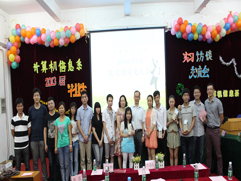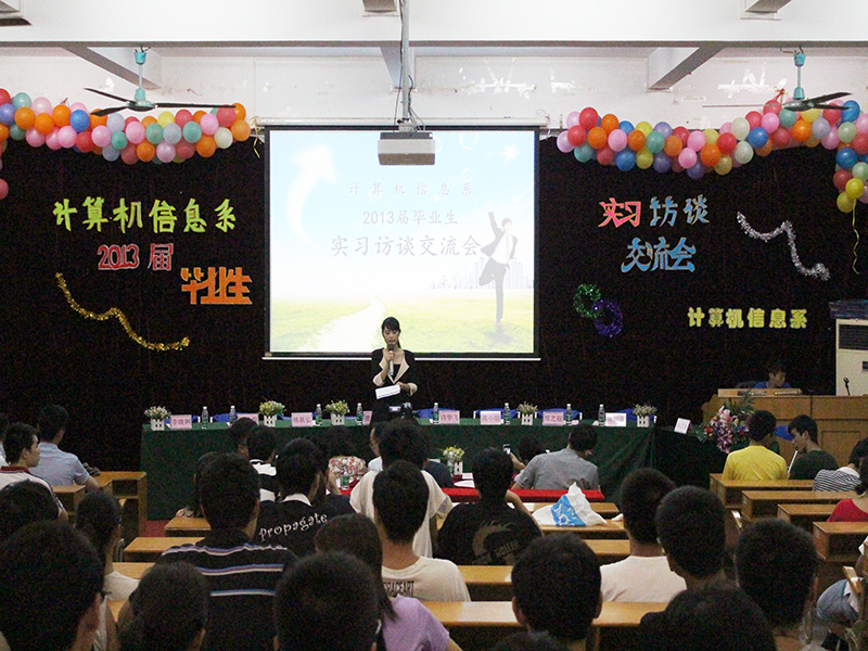 为促进在校生与毕业生之间交流,帮助其合理规划大学生活,提升就业观念,计算机信息系于6月21日晚在综合楼102举办了2013届毕业生实习交流访谈会。本次访谈会邀请了陈丽珠等8位优秀的应届毕业生介绍经验,系李震阳主任、刘松梅副书记、各院(系)辅导员及系各班学生代表出席了交流会。