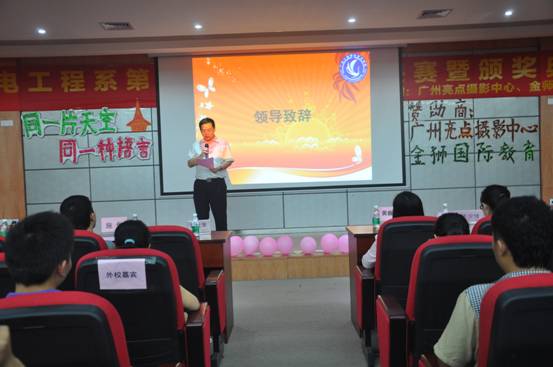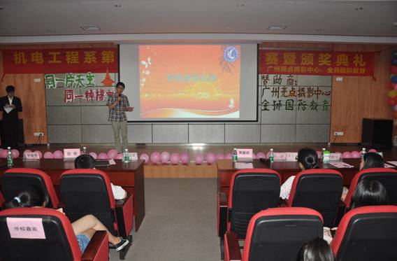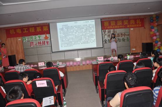 2013年6月18日下午六点,在广州亮点摄影中心与金师国际教育的大力赞助下,由机电工程系主办的"同一片天空,同一种语言"普通话大赛总决赛在图书馆一楼报告厅正式拉开了帷幕。院团委黄馥丽书记、施焦书记和机电工程系曹立生书记以及各系老师代表、学生代表以及附近两所高校的嘉宾们出席了当晚的比赛,比赛还邀请了中国经营报社的资深记者张业军先生、广东电视台《资讯360》创意总监吕佳隆先生。
