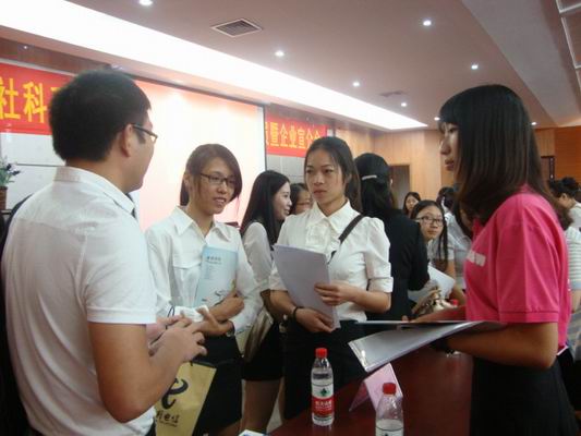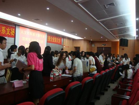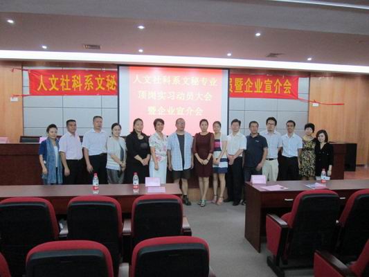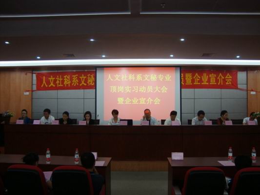 金风送爽,丹桂飘香,9月27日,人文社科系文秘专业2011级毕业生顶岗实习动员暨企业宣介会在图书馆报告厅举行。会议邀请了广东宾翰投资有限公司、广东上下五千年资信科技有限公司、广州军区金城宾馆、中原地产、中国人寿保险股份有限公司、广州市展览服务有限公司、中国联通、广东和生集团、亚海展览公司等9家企业参加宣介会。会议由人文社科系焦英副主任主持。