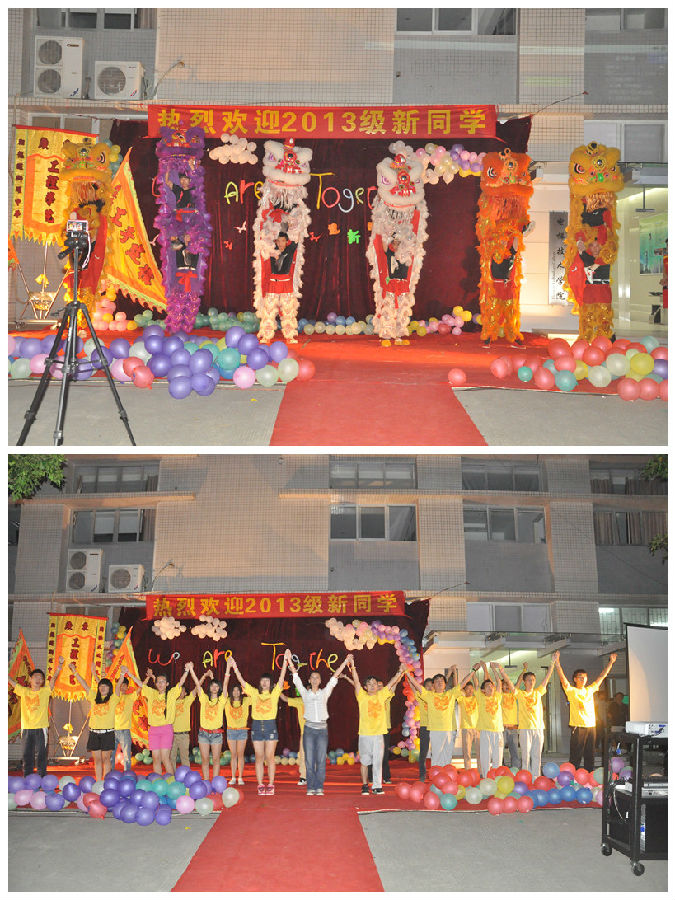 2013年9月24日晚6点半,电梯技术学院《We are together》2013年迎新晚会在电梯技术学院大门前隆重举行。电梯技术学院党总支李艇书记和全体教师欢聚一堂,新生班主任们带领2013级新生载歌载舞,让整个晚会处处洋溢着家的温暖和节日的欢乐。