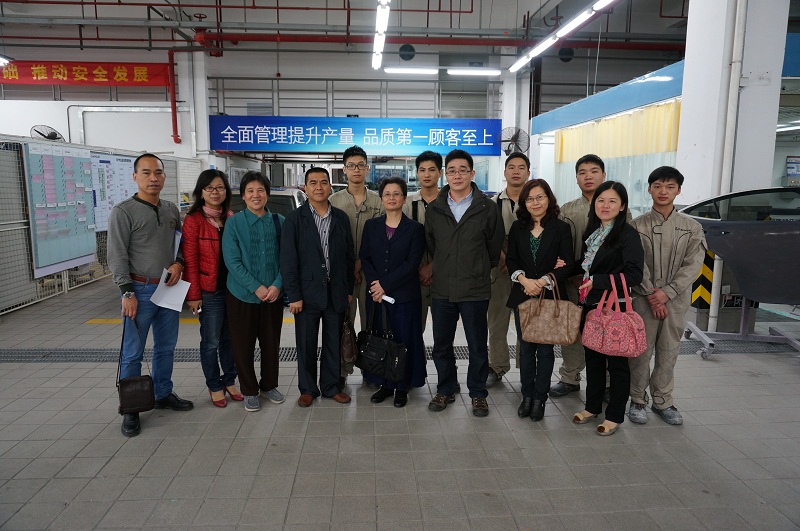 我们的第二站是广州长悦雷克萨斯汽车销售服务有限公司,该公司的梁经理首先带领我们一同参观了顶岗实习学生的工作岗位和情况。然后,我们在公司的会议室开展座谈会。该公司人事部门的赖主管对我们的顶岗实习学生的各方面表现表示很满意。陈玲玲处长、朱文坚教授以及各位老师与顶岗实习的同学们进行了充分的互动交流,关心和了解学生们的工作情况、生活情况、工资待遇等。同学们纷纷发表了自己的意见,并对我院汽车专业课程教学方面提出了自己的看法。随后,陈玲玲处长与赖主管在学生顶岗实习岗位轮岗方面进行讨论。