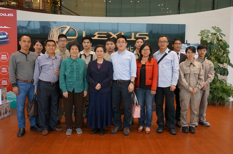 5月6日,学校教学质量监控处陈玲玲处长、朱文坚教授、机电工程学院陆世新书记、邝治全副院长、教务处丘自强老师、实习指导老师梁芳芳老师、欧阳荣华老师以及辅导员胡朝红老师及李家标老师一同前往广东省电信工程有限公司以及广州长悦雷克萨斯汽车销售服务有限公司看望顶岗实习的十几位学生。